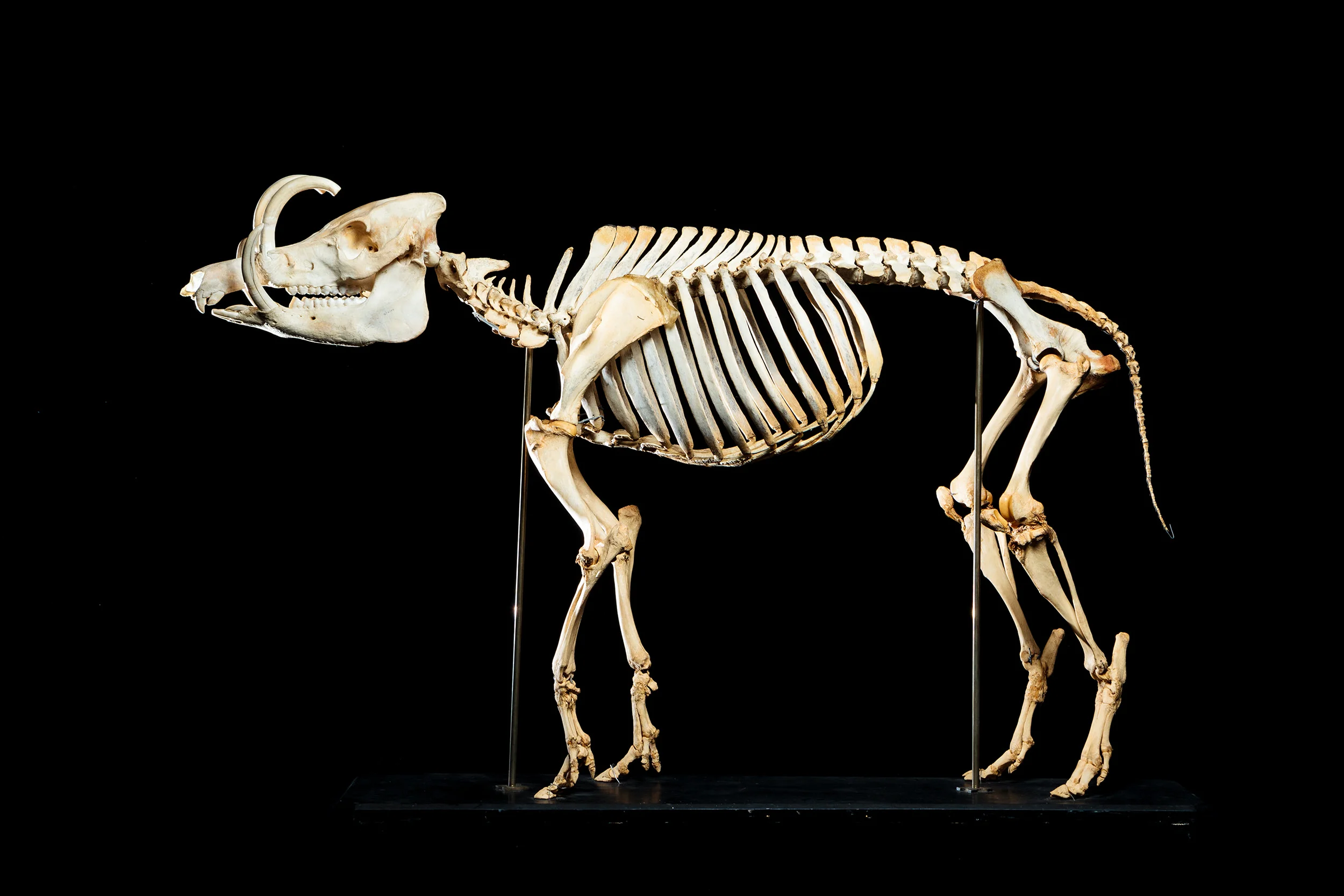 Hairy babirusa Babyrousa babyrussa skeleton, collection of Naturalis Biodiversity Center. Photo by Joris van Alphen.